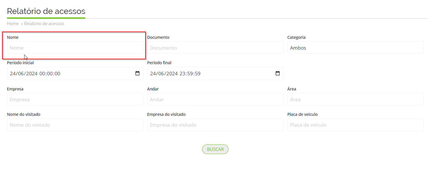 Identificado o usuário, acesse o Relatório de acessos de pessoas e faça uma nova busca pelo nome do motorista encontrado.