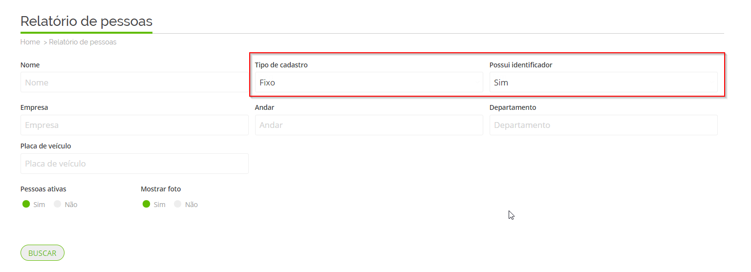 Se precisar de uma relação de fixos com cartão de acesso vinculado, aproveite o recurso do filtro na tela do Relatório de Pessoas.